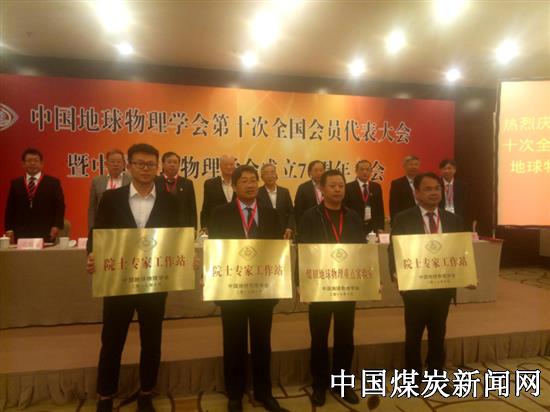 【本网讯】近日,中国地球物理学会院士工作站、地球物理重点实验室授牌仪式在北京国际会议中心举行,中国科学院邓居奇、滕吉文、陈晓非等院士专家出席授牌仪式,并为院士工作站、重点实验室授牌。山东省煤田地质规划勘察研究院理事长王怀洪上台接受煤田地球物理重点实验室授牌,该实验室为全国首家煤田地球物理专业重点实验室。