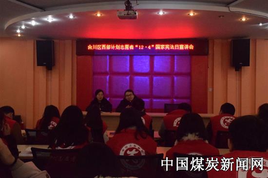 12月4日,中国矿业大学第19届研究生支教团(重庆分团)抵达重庆市合川区青少年活动中心,参加了由团区委组织的“学习宣传贯彻党的十九大精神 维护中华人民共和国宪法权威”主题志愿活动,并与全区其它35名西部计划志愿者共同开展了“12•4”国家宪法日学习宣传活动。本次活动内容丰富,涵盖法制知识讲座、法制知识竞答、宣传资料发放等多种形式。
