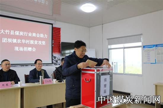【本网讯】 2017年12月8日下午,大竹县煤炭行业商会在大竹县团坝镇农华村会议室举行了助力扶贫攻坚现场捐赠仪式。大竹县委常委、统战部部长丁小伟、大竹县安监局副局长潘科、大竹县煤炭行业商会常务副会长甘国平、大竹县团坝镇党委书记刘琛等出席捐赠仪式,四川中际能源集团有限公司总裁王远贵、行政副总裁魏开阔代表集团参加了捐赠活动。捐赠仪式由大竹县政协副主席、工商联主席陈传东主持。