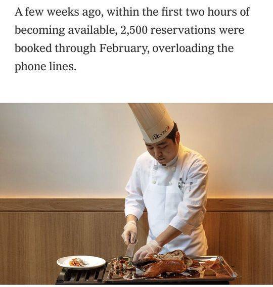 | 北京烤鸭纽约开店 一只600元已预约至明年 | |||