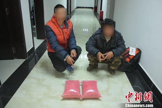 图为犯罪嫌疑人指认被缴获的毒品。 钟欣 摄 记者12月21日从云南西盟县公安局获悉,该局于20日成功破获一起万克运输毒品案,抓获犯罪嫌疑人2名,缴获毒品冰毒片剂10.44千克。 据悉,西盟县公安局民警在工作中发现一伙人员与境外人员相互勾结,欲将一批毒品由境外运输至中国境内进行贩卖,在对该线索进行确认后,西盟县公安局随即集结多部门联合组成专案组对案件进行侦办。经不断摸排和调查,12月20日凌晨3时许,专案组民警在澜沧县抓获涉嫌运输毒品的嫌疑人张某甲和张某乙,当场从2人驾驶的摩托车上查获用黑色塑料袋包装的毒品可疑物十包,经称量共计10.44千克。 图为被抓获的犯罪嫌疑人。 钟欣 摄 目前,2名犯罪嫌疑人已被西盟县公安局依法刑事拘留,案件正在进一步办理中。(完)