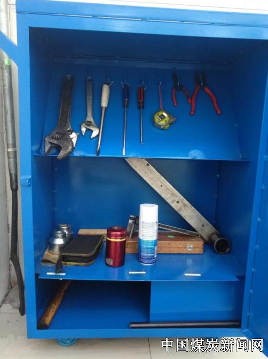 此工具柜加工简单且实用性较强,各种工具可以摆放整齐,这与该矿提高作业现场文明施工理念相一致。