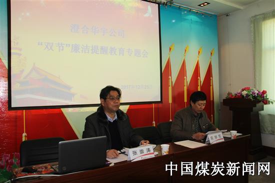 【本网讯】在元旦、春节来临之际,为进一步增强党员干部廉洁自律意识,防止“双节”期间的奢侈浪费和不廉洁行为发生。12月25日上午,陕煤澄合矿业华宇公司在机关二楼会议室召开“双节”廉洁提醒教育会,矿业公司财务总监张崇涛参加会议并讲话。