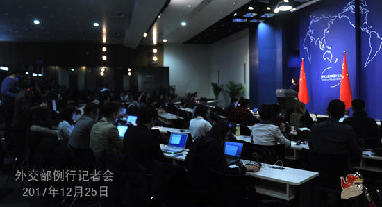问:23日,联合国安理会通过制裁朝鲜的最新决议。朝鲜外务省称这是“战争行为”,并称此次制裁决议造成的一切后果完全由赞成决议通过的国家承担。中方对此有何评论? 答:12月23日安理会针对朝鲜11月发射洲际弹道导弹一致通过了第2397号决议,中方在当天已经对此作出了回应。 我愿再次强调,决议适度强化对朝制裁措施,同时强调不应对朝平民产生不利人道影响,不影响正常经济活动与合作、粮食援助和人道援助,不影响驻朝外交使团活动,并重申维护朝鲜半岛和东北亚和平与稳定,呼吁以和平、外交和政治方式解决问题,支持恢复六方会谈,还强调有关各方应当采取措施降低半岛紧张局势。中方希望有关各方都能全面、平衡执行包括第2397号决议在内的安理会涉朝决议。 在当前形势下,中方呼吁有关国家保持克制,为缓和半岛紧张局势,妥善解决半岛问题作出积极和建设性努力。 问:据报道,第三次巴以和平人士研讨会上周在北京举行。巴以人士围绕推动解决巴以问题进行了深入探讨,达成一系列共识。中方能否进一步介绍具体情况?在当前巴以和谈停滞、耶路撒冷地位风波再起之际,中方如何看待自身在巴以和平进程中发挥的作用? 答:12月21日至22日,第三次巴以和平人士研讨会在北京举行。巴以双方各8名和平人士围绕“双方领导人需要采取的措施、双方公民社会可以发挥的作用以及国际社会可以发挥的作用”三大议题,本着求同存异、共谋和平的原则,进行了充分和深入的讨论,达成《以两国方案为基础推动解决巴以冲突》的共识文件,确认“两国方案”是解决巴以问题的唯一可行路径。我们认为,这次研讨会达成的共识反映了来自两个民族的理性声音,汇聚起双方致力于和平的力量。面对当前中东局势出现的新变化,这次研讨会的召开十分及时和重要。 中方一贯坚定支持巴勒斯坦人民恢复民族合法权利的正义事业,支持“两国方案”,支持建立以1967年边界为基础,以东耶路撒冷为首都、拥有完全主权的、独立的巴勒斯坦国。我们认为,巴勒斯坦实现真正建国,以色列才能获得持久的安全,巴以问题得到全面解决,中东局势才有可能得到根本的缓解。 我们认为,耶路撒冷地位问题应该根据国际社会多年来形成的基本共识,通过最终地位谈判来解决。不久前,联合国大会以压倒性多数通过有关决议,认定任何改变耶路撒冷地位的决定和行动无效,这充分反映了国际社会坚持联合国决议、坚持国际共识的鲜明态度。中方主张,各方应秉持尊重多元历史、坚持公平公道、落实国际共识、实现和平共存的原则,坚持根据联合国的有关决议,通过最终地位谈判达成兼顾各方利益的耶路撒冷地位问题解决方案。巴以双方应该尊重彼此生存权利,尤其是避免采取导致局势进一步恶化的行动。 中国作为联合国安理会常任理事国、负责任大国和巴以人民的共同朋友,始终是巴以和平的坚定支持者,长期以来积极推动中东和平进程,努力劝和促谈。中方将继续以习近平主席提出的“四点主张”为指导,为推动巴以问题早日得到全面、公正和持久解决,实现中东和平发挥作用、贡献力量。 问:据报道,21日,台湾方面官员在联合国网络治理论坛上通过视讯方式发言。其间,中国大陆代表发言抗议。中方对此有何评论? 答:我们的立场是一贯的、明确的。台湾地区参与国际组织活动问题,必须遵照一个中国的原则。联合国互联网治理论坛是联合国框架下讨论互联网治理问题的机制,论坛秘书处严格遵守联大第2758号决议,在台湾问题上恪守一个中国原则。 我还要指出,任何在国际上搞台独分裂活动的图谋,结果都只有一个,那就是注定失败。 问:据台湾媒体报道,瑞典外交大臣日前在接受议会议员质询时表示,对协助台湾有意义且不以国家身份参与各项国际组织的做法持支持立场,并愿意继续支持台湾参与飞行安全等领域专家会议。关于台参与世界卫生组织问题,瑞外交大臣表示,对台湾期待成为世界卫生组织观察员的诉求持正面态度,但此议题仍需获世卫组织内部共识,目前来看,共识似乎并未出现。中方对此有何评论? 答:我刚才在回答台湾“中央社”记者提问时,已经表明了中方在此类问题上的立场。在中国台湾地区参加国际组织活动问题上,中方的态度是一贯和明确的,即必须按照一个中国原则来处理。台湾问题是中国内政,中方坚决反对其他国家在此问题上说三道四。 在今天记者会结束之前,我有一个令人伤感的消息要告诉大家。 大家可能已经知道了,12月23日,半岛电视台驻京分社长伊扎特先生在北京不幸因病去世。伊扎特先生在中国工作生活前后20多年,为增进阿拉伯世界人民对中国的了解、促进中阿人民友好作出了积极努力。我们对伊扎特先生不幸去世表示沉痛哀悼和深深惋惜,向他的家人和亲属表示诚挚慰问。中方有关部门愿为伊扎特先生家人妥善处理后事提供协助。