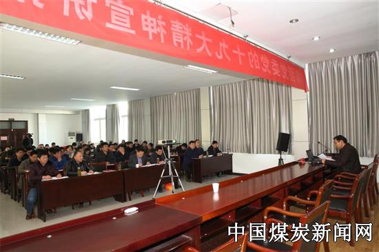 【本网讯】12月7日上午9时,中煤矿建集团党委委员、工会主席王振江一行来到安徽建安公司宣讲党的十九大精神。建安公司机关全体人员、基地附近单位党政负责人及党员100余人参会,宣讲会由公司党委书记袁龙星主持。