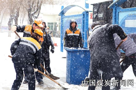 大雪天给该公司的职工出行也带来了严重的不便。大雪未停,车辆段段长王小卫带领段职工清扫路面上的积雪,大家拿着铁锹、笤帚、推板冒着大雪把通向上班的几条路上的积雪清扫干净了。“陕北地方昼夜温差大,若不及时清扫,到了晚上易结冰,为了确保人身安全,我们必须及时清扫”王小卫段长说道。冷冽的寒风中夹杂着雨雪拍打在他们的脸上、身上,此时再厚重的衣服也无法抵挡寒潮的侵袭,鹅毛大雪一直不间断的落下,除雪工作在一批一批的人员替换中,一刻也没有停歇,尽管雪花落在他们的身上,头发、衣服都结了冰,但却没有一个人叫苦叫累,他们筑起了打不垮、拖不烂的“钢铁长城”。