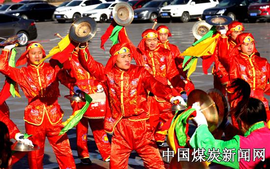 【本网讯】2月3日上午,同煤集团塔山矿办公楼广场载歌载舞、锣鼓齐鸣,由该矿组织两节文艺表演队正在进行表演,据了解,为了使矿区节日文化丰富多彩该矿组织60多人欢庆花鼓表演队,为节日矿山增添了喜庆气氛。图为欢庆花鼓表演队正在为职工群众表演节目。