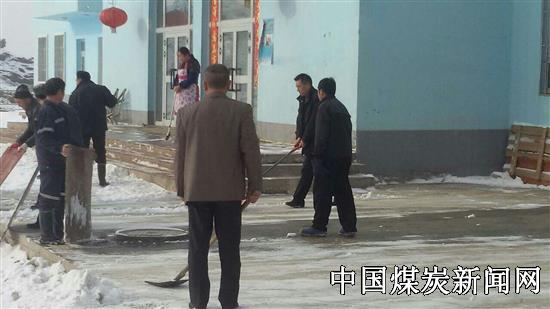 但为了方便工友们能够安全行走,大家还是不畏严寒,在塔河矿业公司值班领导董事长方兴国的带领下,热火朝天地挥舞着铁锹和笤帚投入到了扫雪行动中。在扫雪队伍里不仅有董事长,矿党支部书记和广大工友们,还有我们的维族“亲戚们”,他们也积极加入到扫雪行动中,大家积极主动、互相配合,你铲我扫,不亦乐乎。经过两个多小时的辛勤劳动,榆树岭煤矿办公楼、宿舍楼和食堂门前的道路被清扫干净,使大家在安全行走时增添了几分好心情。
