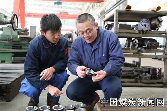 图为该公司车间师傅为徒弟讲解铣工技巧