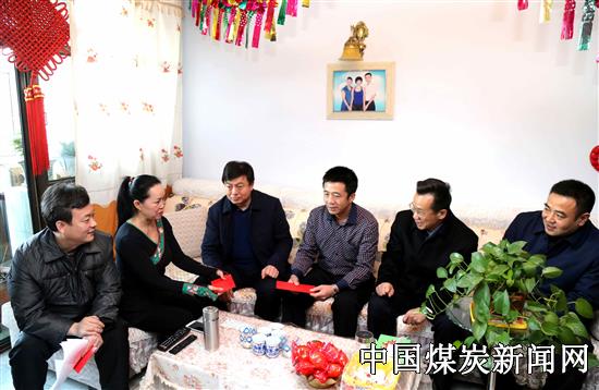 【本网讯】春节前,同煤集团塔山煤矿领导时刻把对困难员工的冷暖挂在心上,1月24日上午该矿工会带上米、面、油、节日慰问金等节日慰问品,送到了全矿103户困难家庭家里,使他们快快乐乐、过一个吉祥和谐的春节,图为:矿领导为困难家庭送去了节日慰问金。