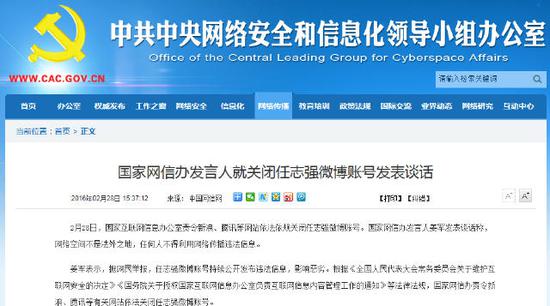 图片来自网络 严肃查处任志强列入北京市纪委2016成绩单 来源:中国青年网 中国青年网北京2月9日电 2月8日,北京市纪委书记张硕辅在十一届市纪委六次全会上的工作报告发布,报告详列2016年监督执纪问责“成绩单”,称“加大对违反政治纪律、政治规矩问题的查处力度”,报告特别指出:“严肃查处任志强公开发表错误言论问题。” 任志强公开发表错误言论问题事件回放: 2016年2月19日,党员任志强针对 “媒体姓党”在其微博发表违规违纪言论,引爆舆论。 2016年2月24日至28日,中国青年网连续刊发《任志强“党民对立论”用心险恶》《任志强“党政公司论”挑战宪法》《任志强“媒体姓民论”乱国害邦》《党员任志强叫板中央必须问责》“三论一责”系列评论文章。 2016年2月28日,中央网信办责令有关网站关闭任志强微博,称任志强微博持续公开发布违法信息,影响恶劣。 2016年2月29日,北京市西城区委下发《关于正确认识任志强严重违纪问题的通知》,称将严肃按照《中国共产党纪律处分条例》,对任志强作出严肃处理。 2016年5月2日,西城区委通报:任志强严重违反党的政治纪律,给予留党察看一年处分。 ![]() 2016年2月29日,北京市西城区委下发《关于正确认识任志强严重违纪问题的通知》。微博截图 2016年5月2日,北京西城区委通报任志强处理情况。网页截图