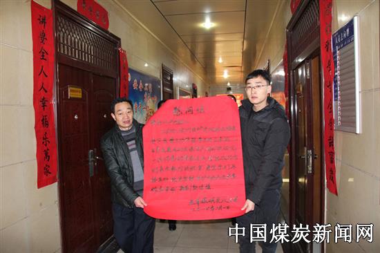 3月1日清早,阵阵欢庆的锣鼓声中,一张大红的慰问信送至陕煤铜川矿业玉华矿综采队学习室内,“你们攻坚克难,1-2月份创造了连续日产过万吨,建矿以来的历史最好成绩,向矿井交出了一份满意的答卷,有力提升了企业经济效益,我代表全矿上下向综采队干部职工表示感谢……”。随即,矿长岳东向大家鞠躬致意,学习室内爆发出热烈的掌声。