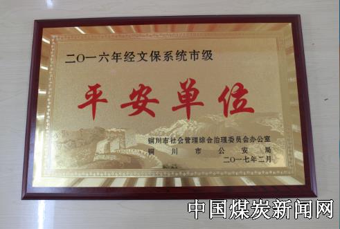 【本网讯】近日,从陕西铜川市社会管理综合治理委员会办公室、铜川市公安局传来喜讯,铜川矿业供用电分公司被授予2016年度市级“平安单位”荣誉称号。
