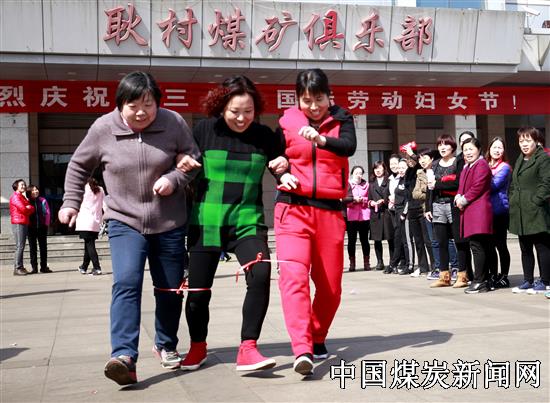 【本网讯】为庆祝“三八”妇女节,河南能源义煤公司耿村煤矿组织了丰富多彩的文体活动丰富女工节日生活。图为女工正在参加“齐心协力”项目比赛。