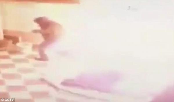从视频中可见,上周五深夜,一名身穿黑色连帽衣的男子手提一桶汽油,走近躺在被窝内的流浪汉马瑟罗,淋上汽油,然后从口袋中拿出打火机点火,床铺随即爆炸。而行凶者也意外着火,不断拍打起火的裤子。