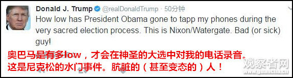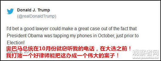 | 特朗普称大选期间遭奥巴马监听 奥巴马:一派胡言 | |||