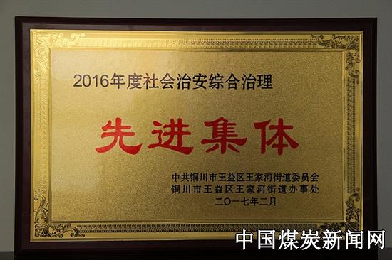 【本网讯】近日,陕煤铜川实业王家河社区被铜川市王益区王家河街道办事处授予“2016年度社会治安综合治理先进集体”荣誉称号,这也是该社区多次荣获此项殊荣。