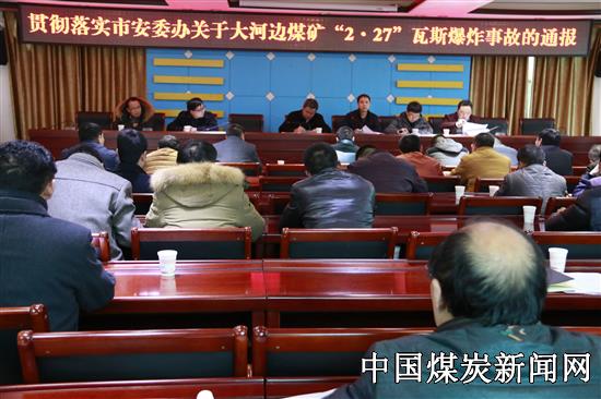 安全副矿长李文原文传达了盘县安监局下发的《关于转发<关于六盘水市钟山区大河边煤矿“2.27”瓦斯爆炸事故的报告>的通知》,通知显示,此次事故于2月27日7时32分发生在大河边煤矿北采区310702综采工作面,属于局部瓦斯爆炸事故,事故当班共入井41人,其中11人受伤,7人死亡,其余人员安全升井。针对严峻的安全生产形势,李文结合实际对当前安全工作进行安排部署:一要认清形势,时刻绷紧安全弦,牢固树立安全工作常抓不懈的思想;二要全面落实好“手指口述”安全确认,纠正不安全行为;三要加强安全教育培训,特别要加强新招录员工及特种作业职工的教育培训;四要做好安全隐患的自查自纠工作,抓好“八查”,即:查超层越界、查复产复工验收、查淘汰退出、查“六大系统”、查采煤工艺和方法、查超能力和超强度生产、查通风系统、查安全生产投入。严禁“五假五超”,即:假整改、假密闭、假数据、假图纸、假报告和超能力、超强度、超定员、超层越界、证件超期。党委书记石永强调,要认清形势,保持清醒的头脑。摆正安全与生产、安全与发展,安全与效益之间的关系,严格把控安全重点,注重现场把控。严格执行各项制度,提高制度的执行力,在思想上、行动上、结果上都要体现安全主体责任,认清安全工作的复杂性、长期性、艰巨性,把控安全重点,安全隐患进行闭环管理,确保安全生产。