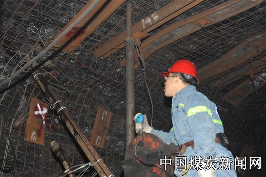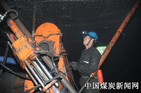![]() 图为该矿施工人员正在综放工作面5201巷道打水压致裂孔