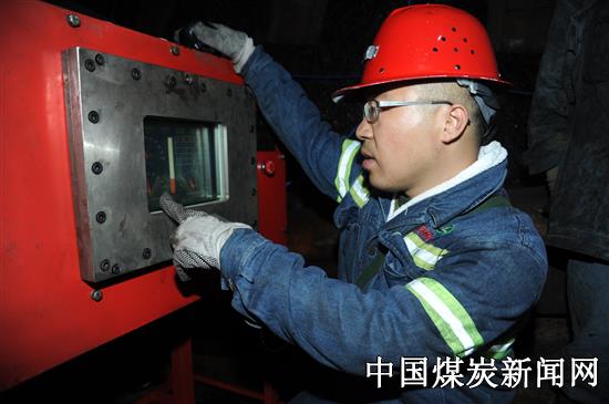 图为该矿技术人员正在通过远程监测系统观测水压致裂情况
