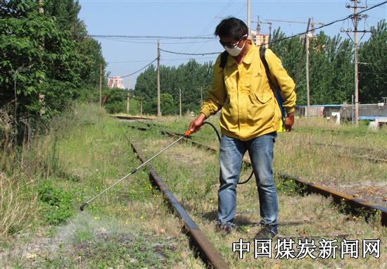 5月12日上午,烈山养路区的职工正在喷洒除草剂进行线路除草。