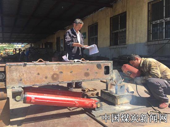 【本网讯】今年以来,河南能源耿村煤矿本着实际、实用、实效的原则,坚持在创新上下功夫,多项创新成果成功应用,产生了良好的安全效果和经济效益。图为机修厂职工正在加工改造已经投入使用的“机械手”。(“机械手”替棚作业装置应用,使以往替棚需要4-6个人作业,变为现在2个人即可完成全部作业,不但节省了人力,降低了职工劳动强度,也从根本上解决了替棚作业时存在的人身安全隐患。)