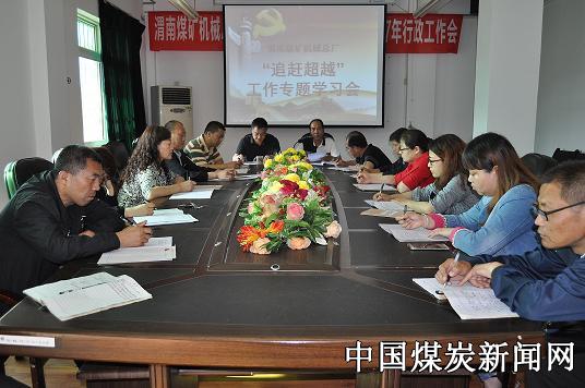 【本网讯】5月16日,蒲白渭南煤机厂组织全体职工干部召开了“追赶超越”专题学习会,该厂党委书记全文传达学习了集团公司杨照乾董事长和严广劳总经理在追赶超越汇报点评会上讲话精神,厂长解读了矿业公司雷贵生董事长和沈显华总经理在追赶超越汇报点评会暨经济运行会上讲话精神。
