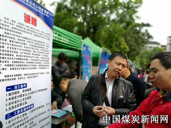 【本网讯】今年以来,川煤集团达竹煤电公司小河嘴煤矿积极响应矿区所在地达州市达川区就业精准扶贫号召,降低就业门槛,面向返乡农民工提供了55个就业岗位,搭建了返乡农民工与用工企业对接平台,让返乡农民工实现家门口就业脱贫。图为4月27日,小河嘴煤矿面向返乡农民工招聘采掘工人现场。