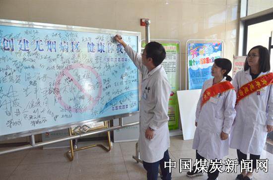 【本网讯】为喜迎五四青年节的到来,进一步弘扬雷锋精神,创建优美整洁、温馨和谐的医院环境。五四前夕,冀中能源峰峰集团总医院团委组织30余名青年志愿者在新住院大楼举办了“创建无烟病区 健康你我他”主题签名活动。志愿者们纷纷邀请来院的患者和家属进行承诺签名,同时还分组深入科室、病区及楼梯走廊等地开展控烟宣传,现场宣教吸烟的危害及被动吸二手烟会引发那种疾病等内容,并及时对院内吸烟的职工和群众进行劝阻。该院团委开展此项活动,旨在使大家摒弃陋习,养成不吸烟或者不在公共场所吸烟的良好习惯,为患者创建一个清新、健康、和谐的就医环境。
