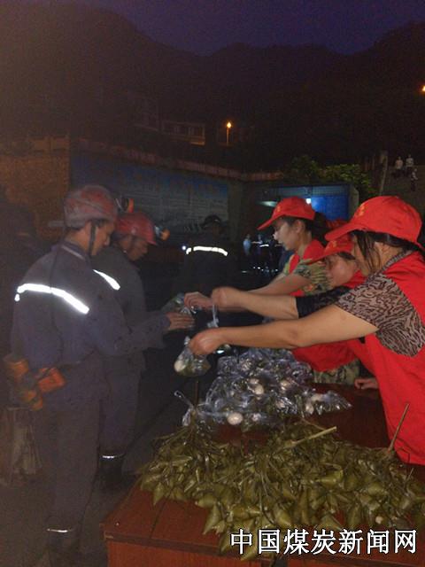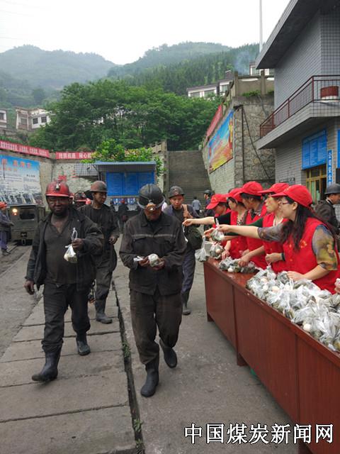 【本网讯】5月30日端午节早上5点,晨曦微露,身着红色宣传队服的石屏一矿的矿嫂们已经在井口忙开了,“师傅,端午节安康”“兄弟,端午节快乐,下井注意安全”……,伴着一声声亲切的问候,矿嫂们把亲手包的粽子送到早班职工的手上。早上5点至6点,7点半至8点半,中午1点至2点,按照早班、中班、夜班及大班职工出入井的时间,矿嫂们全天分三个班次为全矿800余名出入井职工送粽子3000余个,鸡蛋1000个,送去了矿嫂们对矿工兄弟的满满的安康祝福,也送去了矿党政工团组织对职工满满的爱。