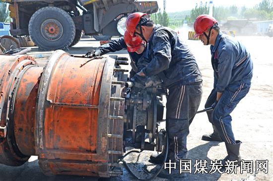 准能集团设备维修中心以“安全生产月”为契机,进一步强化设备管理,狠抓安全生产责任制和设备包机责任制的落实,坚持“三不生产”和“四不放过”原则,严防人身伤害事故和机械事故的发生。图为该中心职工正在更加630E卡车电动轮。