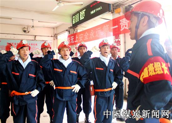 【本网讯】在全国安全生产月活动中,安徽淮北矿业集团杨柳煤业公司实行“轮值班组长”负责制,在79个班组中,职工轮流“坐庄”当一班“干部”,落实安全责任,排查事故隐患,加强自主管理。图为6月15日,掘进一区“轮值班组长”张建带领职工进行入井前安全宣誓。
