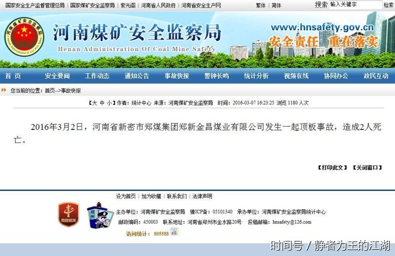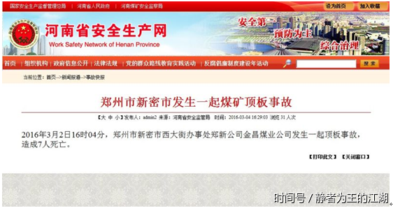 注 今年全国两会期间,郑煤集团接连两天发生两起生产安全事故。其中,3月2日,郑煤集团郑新公司金昌煤矿发生顶板事故,造成7人死亡,该事故涉嫌瞒报5人。目前,河南省调查组正在调查中。 两起事故分别是:3月2日16时左右,郑煤集团郑新公司金昌煤矿11011工作面发生一起顶板溃水溃渣事故,造成7人遇难。3月3日2时39分左右,郑煤集团大平煤矿21141下巷掘进工作面发生煤与瓦斯突出事故,造成2人遇难。 据了解,新密金昌煤矿事故发生后,相关方面最早上报的死亡人数为2人。如今,仍在河南省煤炭监察局网站上公布的信息即可印证。但该事故在发生后不到半个月,就被发现瞒报,河南省调查组亦介入调查。