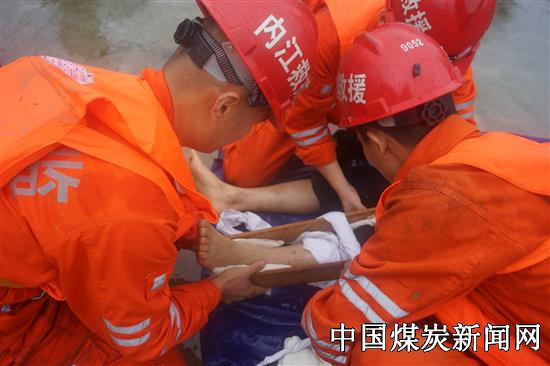 参演指战员按规定进行战前检查后入井,展开灾区侦察,检测温度、有毒有害气体等情况,并利用生命探测仪搜寻到两名遇险矿工,指战员们迅速用破拆、起重等救援装备开展救援,对遇险矿工进行创伤急救包扎后,安全护送到井口转医院救治。