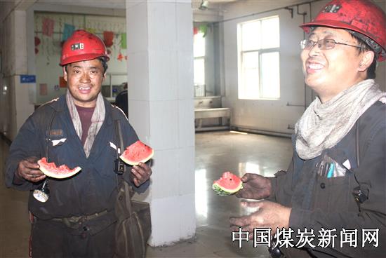 【本网讯】连日高温,为做好防暑降温,保障员工身体健康,传递公司对员工的关心,6月1日中午,安徽淮北矿业集团杨柳煤业协安员带着西瓜来到副井口开展“酷暑送清凉,关怀暖人心”活动,为一线员工送去清凉和工会“娘家人”的关怀。