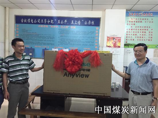 【本网讯】5月30日,古叙煤田公司石屏一矿党委书记龙林带领党群工作部人员为该矿采煤一队送去一台50英寸的液晶电视,以奖励该队工作面安全回撤和安装“短平快”劳动竞赛中取得的优异成绩。