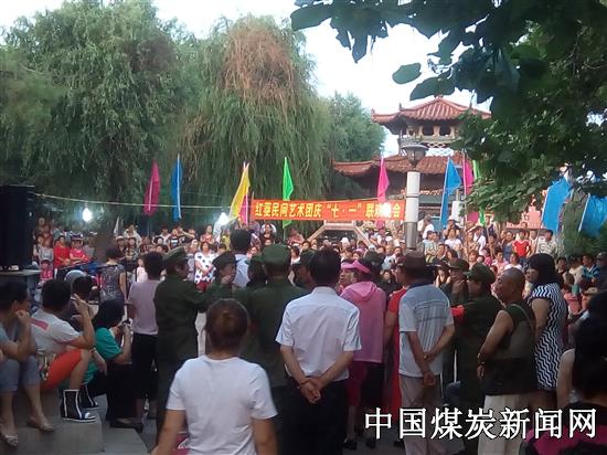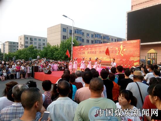 为庆祝建党96周年,沈煤集团红阳三矿社区、红阳二矿社区联合举办“幸福沈阳、共同缔造”主题庆祝活动。图为在三矿生活区广场,精彩活动吸引了众多职工家属前来观看。(手机拍摄)