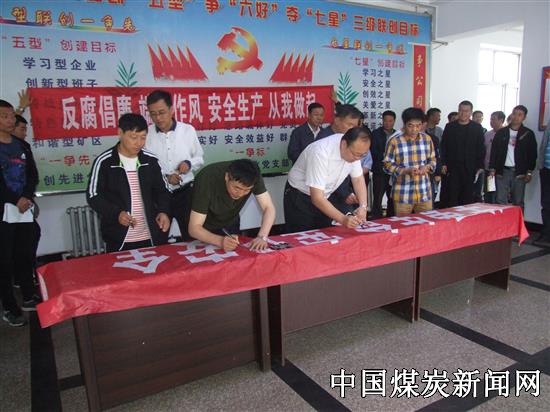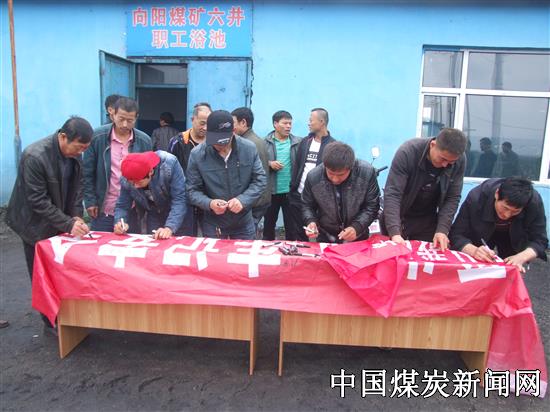 集团向阳矿在矿、井区、班组开展安全签名活动。图为职工在签名