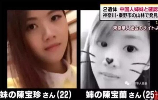 发现两具尸体的山林。 姐妹:高中毕业赴日留学 出生于福建省福清市江镜镇文房村的陈宝兰与陈宝珍两姐妹来自于一个六口之家。除了父母之外,陈宝兰与陈宝珍两姐妹还有一个姐姐和弟弟,姐姐远嫁外地,弟弟则外出不在家。两姐妹都是在高中毕业后前往日本留学的,姐姐陈宝兰于2009年赴日留学,而妹妹陈宝珍则是在2012年前往日本的。 在遇害之前,姐姐陈宝兰于今年3月从横滨市内的一家服装设计专门学校(相当于中国的专科学院,专门学校的学制较短,一般为1年至3年)毕业,而妹妹陈宝珍则是一家游戏软件专门学校的在校生。 两姐妹父亲回忆称,在失去联系的前一天,两个女儿和朋友刚刚旅游完回横滨。在当天傍晚,他刚刚给女儿寄了喜欢吃的家乡特产,并且还和她们通过微信视频聊天。听到他给女儿寄了好吃的特产,女儿在视频聊天的最后一句话,还特意说:谢谢爸爸。