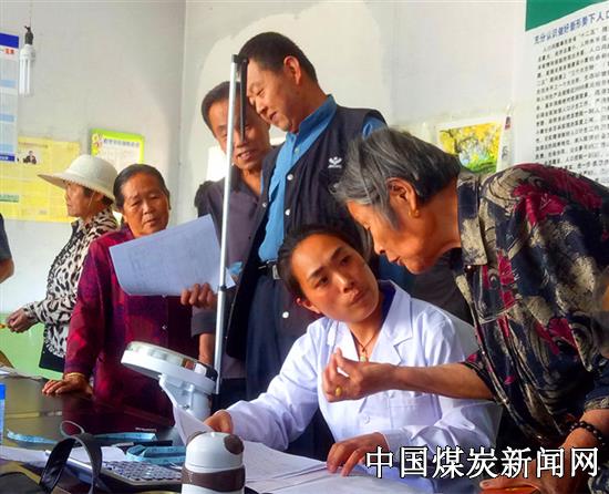 【本网讯】近日,贵州省盘州市柏果镇中心卫生院洒基分院医务工作人员来到盘江精煤股份公司土城矿,对分布在矿区内10个居委会超过65岁的老年人进行体检,体检涉及身高体重、尿检、肝肾功能、血压、视力、B超、心电图等相关检测。通过体检,使老年人及时掌握自身健康状况,做到无病早预防,有病早发现、早治疗,提高健康水平,老来有所“享”。图为医务人员耐心向老人介绍体检结果,解释身体健康情况