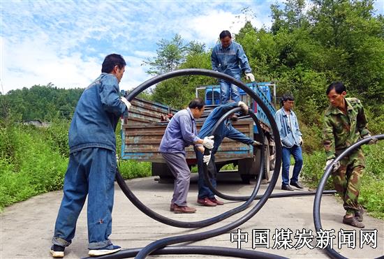 【本网讯】为进一步确保供电安全,7月25日,贵州盘江精煤股份有限公司月亮田矿机电科牵头对十一万变电所主回路电源进行架空线路改造,350米电缆由40多名职工“手把手、肩并肩”的拖运到达指定位置。