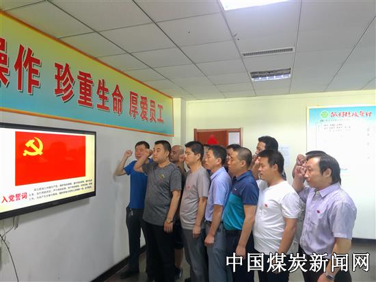 【本网讯】阳煤集团二矿运输工区在纪念七一系列活动中,要求党员“维护核心、见诸行动”,敢于担当,甘于奉献,主动抓好安全生产、节支降耗、现场管理,保质保量完成各项工作任务,充分发挥先锋模范作用,带头弘扬正气。图为运输工区一队党员正在重温入党誓词。