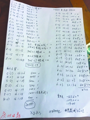 李先生整理了长长的游戏充值账单。
