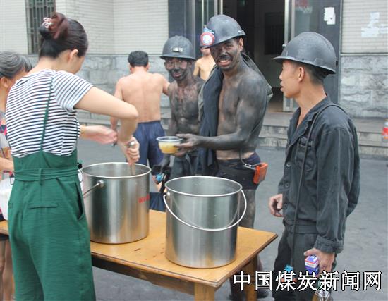 【本网讯】今年入夏以来,持续高温,为切实做好夏季防暑降温工作,湘煤集团湘永矿业公司铜角湾煤矿工会心系一线员工,除为每位员工发放一份绿豆、白糖、十滴水等防暑降温物质外,矿女工委还组织女工、家属开展“井口送西瓜、送绿豆稀、送凉茶”等系列活动,让他们切身体会到夏季的清凉。8月9日,矿嫂矿灯房门前送绿豆稀场景。