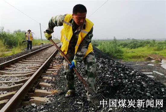 职工们有条不紊地进行着各自的工作,汗水滴落在线路上、钢轨上,浸透了衣服,但一会又被火辣辣的太阳晒干,在铁道线上的温度高出普通地面好多度,40多度的温度笼罩着铁道线上工作的职工,“挥汗如雨”已经不能形容职工们奋战的情形,职工们个个像水洗的一样。“还有一节铁就起完了,喝口水继续干。”王士军一边给职工打气,一边帮助起道人员上道砟。当起道机起完最后一个起道点后,“你们先休息一下,然后把工具收好,捣固完咱们就可以回去了”王士军安排好后,又回头帮后面的捣固机清理钢轨上遗漏的矸石。