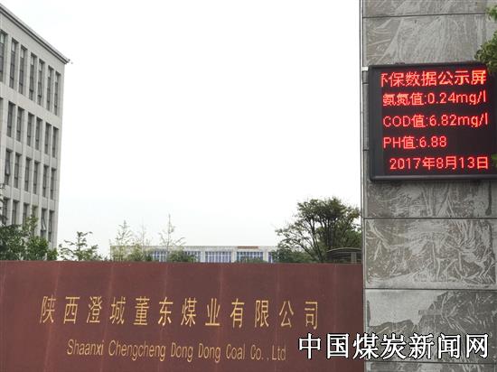 【本网讯】 8月12日,一块环保电子公示屏悄然竖立在陕煤澄合矿业董东公司大门口,实时显示氨氮值、PH值、COD值和流量等监测数据,以接受公众监督。