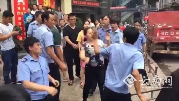 8月14日,云南网曾报道了“云南昭通彝良商贩与城管当街互殴扇耳光”的事件。 19日,云南网从相关部门了解到,该县城管对一长期出店占道经营的面馆物品进行暂扣时,双方发生争执后“互扇”,一名涉事女商贩被警方行政拘留7日,一名城管执法队员被罚款200元。 据介绍,位于彝良县角奎镇东正街的某面馆长期出店、占道经营,县城管大队工作人员曾对该业主多次上门劝导,但其拒不搬回店内,致使地面被油渍污染,占道经营也严重影响了县城市容市貌和市场经营秩序。 8月11日早10时许,在多次劝导无果的情况下,城管综合执法一中队决定对此面馆长期出店占道经营的物品进行暂扣。在执法过程中经营业主抢夺暂扣物品、用锅砸执法队员、扯坏执法队员衣服、肆意谩骂队员、并向队员泼洒污水。城管大队一执法队员因此而掀翻了经营业主摊子,并在受到该业主人身攻击时,情绪激动而与业主“互扇”。该事件被网友拍下发到了微信朋友圈。 经彝良县公安局角奎派出所调查取证,在证据充分、事实清楚的前提下,已于8月14日下达了给予经营业主行政拘留7日、另一名参与妇女罚款200元;事件中一城管执法队员罚款200元的处罚决定。 此外,彝良城管大队开会研究决定,鉴于该大队执法队员在执法时,未能控制自己情绪,执法方法简单,行为粗暴,产生过激行为,导致与摊贩扭打在一起,也给单位形象带来影响。按照彝良县城管大队管理相关规定,给予该起事件中的一名执法队员全队通报批评、并留队察看三个月的处理决定。