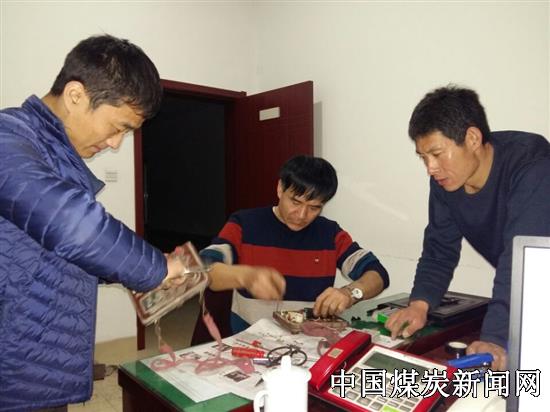 公司团委特组织了一批技术精干力量,义务为区队维修小电设备,图为义工志愿者在精心维修放炮器材