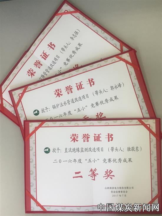 【本网讯】近日,在漳泽电力“五小”竞赛活动推进会上,塔山发电公司“直流绝缘监测改造”(带头人:独敬东)获 “五小”竞赛二等奖、“凝结水下降管管道改造”(带头人:李志强)和“锅炉炉水循环泵注水管道改造”(带头人:郭永峰) 获 “五小”竞赛优秀奖。