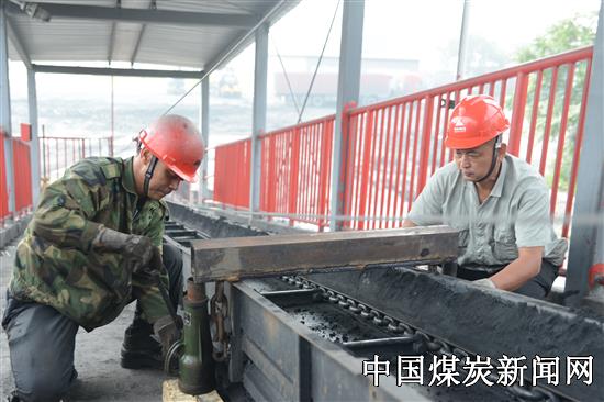 太西洗煤厂加大对各类生产设备的检修保养力度,保证设备处于完好状态,确保节日期间安全稳定生产。图为该厂检修人员正在对820刮板输送机进行检修。